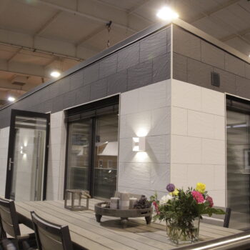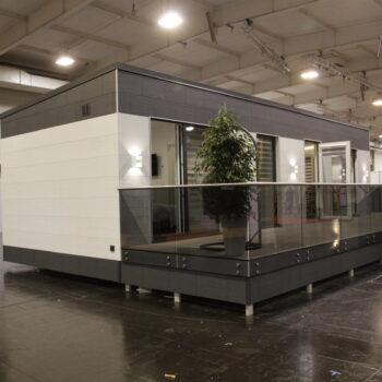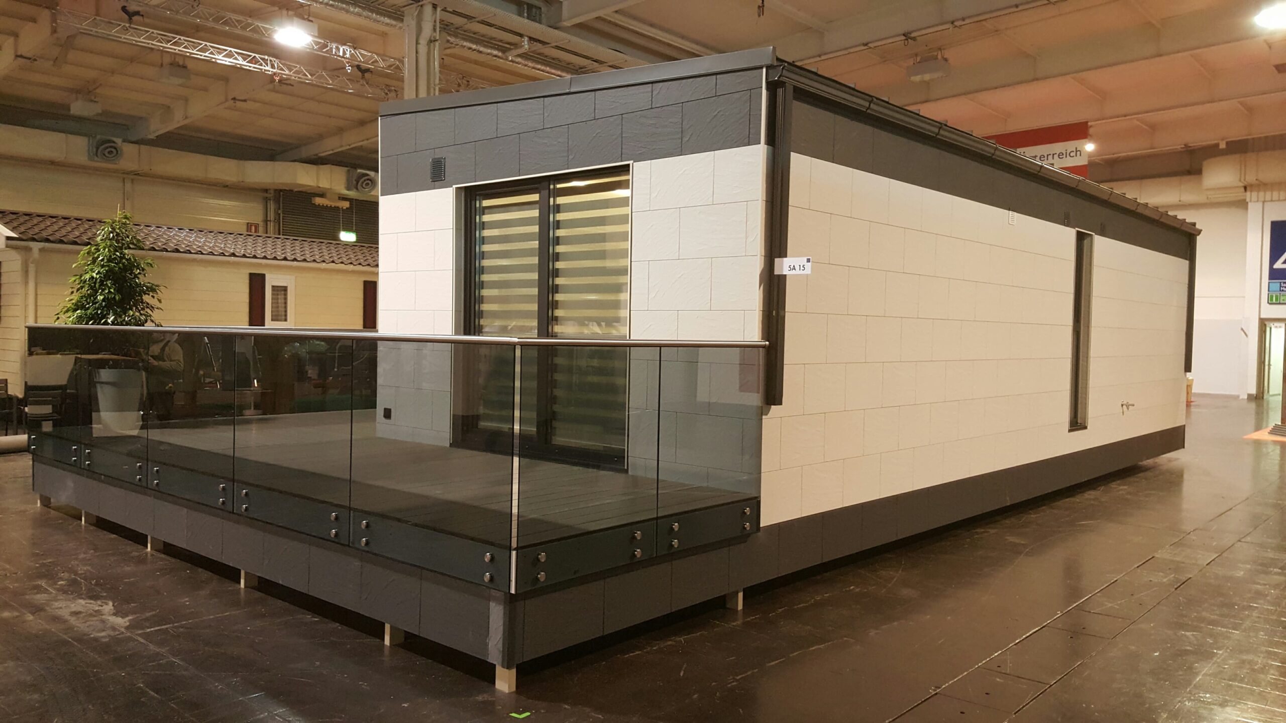 Die großen Fenster sorgen mit maximalem Lichteinfall für ein sonniges Wohngefühl. Bei freier Raumaufteilung ist das Modell flexibel planbar von 40 bis 120m², wobei die Wandstärke je nach Einsatzzweck als Ferien- oder reines Wohnhaus 15 bis 28cm betragen kann.